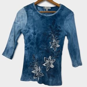 VINTAGE Suzie Tie Dye Quarter Sleeve Rhinestone Embellished Blouse