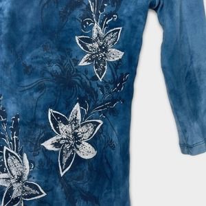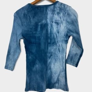 Tie - Dye Blue, Quarter Sleeve Embellished Top