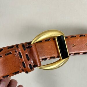 VINTAGE Swarovski Black Crystal Brown Leather Belt size 38 EXCELLENT CONTIDION