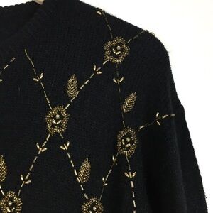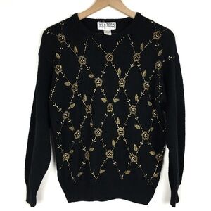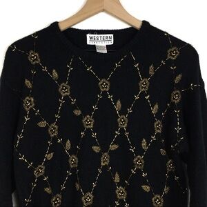 VINTAGE Sweater Beaded Floral Flowers Roses Size Small Western Connection