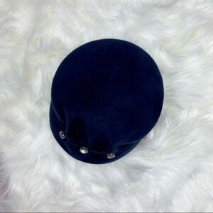 VINTAGE Swingin 60s GoGo Girl Rhinestone Cabby Cap Deep Blue Felt Hat Mod