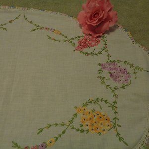VINTAGE TABLE OR VANITY HAND COLORS EMBROIDERED LONG RUNNER