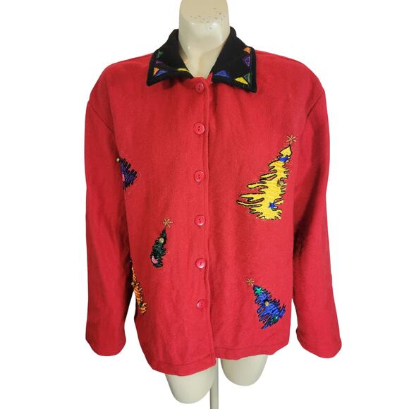 VINTAGE TAKE TWO Red Wool Ugly Christmas Button Front Jacket Women's Size Large