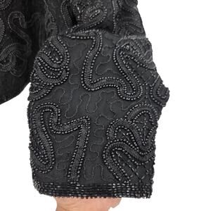 VINTAGE TALBOTS MEDIUM SILK EMBROIDER BEADED WESTERN FRONT CLIP CARDIGAN