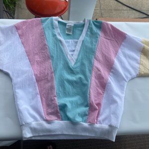 VINTAGE TEDDI SPORT WOMEN'S TOP SIZE M BLUE, WHITE, PINK AND YELLOW