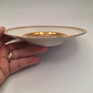 Beautiful vintage Art of Chokin 24K gold trim decorative plate featuring a flower cart design, with intricate details etched into the metal and gilded with 24K gold. Crafted in Japan and made in porcelain, this plate measures 6" diameter. Please see photos as they are part of the description. Smoke free home. Reasonable offers considered.