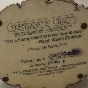 Yesterday’s Child Boyd’s Bears & Friends are a unique collection of exquisitely crafted Hand Painted resin figurines designed by G.M. Lowenthal & produced by The Boyd Collection Ltd and, ultimately, Enesco. From sentiment to season, this lighthearted collection of whimsical bears exemplifies those special moments that we all to cherish and remember.