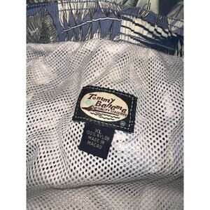 VINTAGE TOMMY BAHAMA BLUE FLORAL LEAF PATCHWORK NYLON SWIM SHORTS TRUNKS SIZE XL
