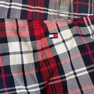 Vintage Tommy Hilfiger 100% cotton red and blue plaid academia cropped pants
