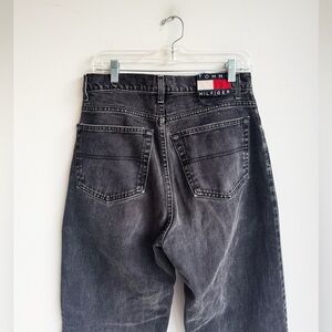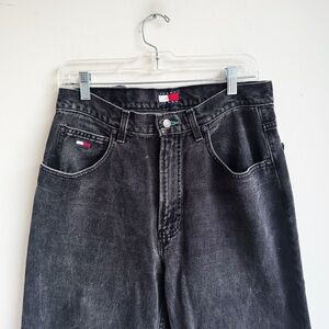 vintage tommy, 90s denim, y2k streetwear, grunge jeans, relaxed taper, black rigid denim, skater aesthetic, art-teacher vibe, comfortable vintage, mid-size friendly, distressed lived-in denim, wardrobe staple, unisex style, retro cool, minimal streetwear