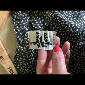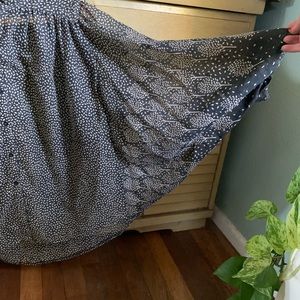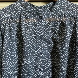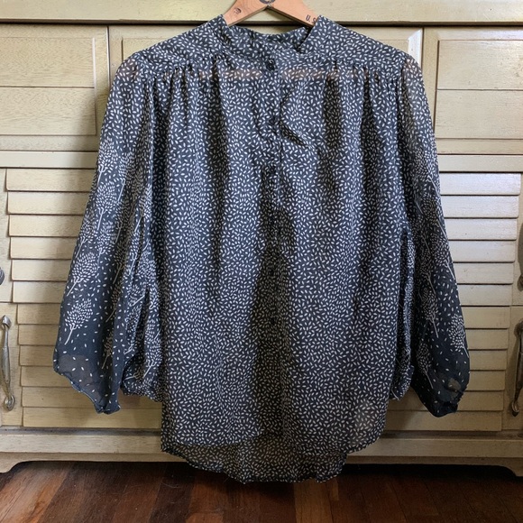 Cute vintage top. Winged sleeves with cute little leaf and tree pattern. Super light material. No size but I would say it’s a medium-large.