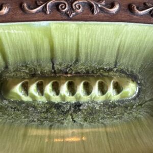 This vintage Treasure Craft ashtray is a must-have for any collector of tobacciana. Made in the United States, this large green ashtray is a beautiful piece that will add charm to any home decor. Its unique design and durable construction make it the perfect piece for any smoker or collector.