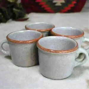 VINTAGE TREASURE CRAFT Glazed Earthenware Handmade 1980s Set of 4 Mugs Handles