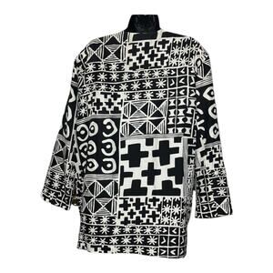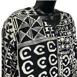 VINTAGE TRIBAL GRAPHIC BLAZER 1980s 1990s BOHO 100% SILK BY ADRIENNE VITTADINI L