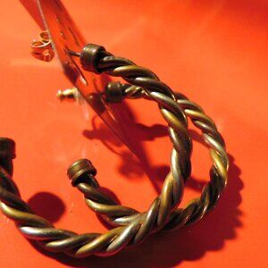 VINTAGE TRI-COLOR TWISTED METAL EARRINGS - GREAT WITH JEANS!!