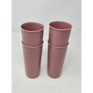 VINTAGE TUPPERWARE SET OF 4 TALL TUMBLERS DUSTY ROSE PINK 12 OZ DRINKWARE 1990S