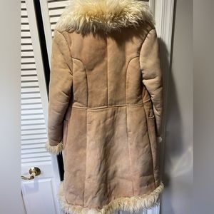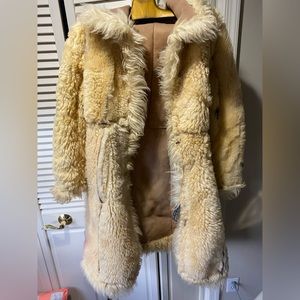 VINTAGE TURKISH SHEARLING LONG COAT SIZE M LONG FUR SHEEPSKIN TAN GOOD VINTAGE