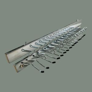VINTAGE, TY-MASTER, AUTOMATIC TIE RACK. CHROME-PLATED. 13 3/4”W X 2 3/8”H