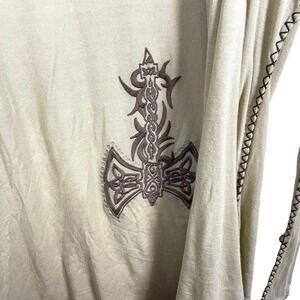 VINTAGE Tail Bait Wool Blend Embroidered Studded Open Cardigan in Tan Size S