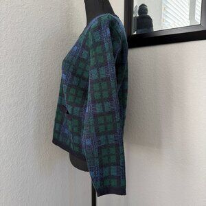 VINTAGE 80s Talbots Tartan Plaid Blue Green Cardigan Sweater Medium
