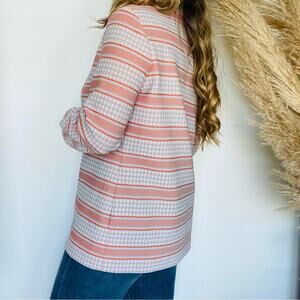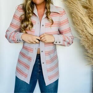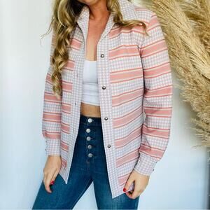 VINTAGE Tan White Orange Striped Houndstooth Button Down Shirt Jacket Shacket