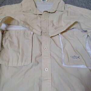 VINTAGE Tarponwear Simms Fishing Shirt Size Large Khaki Long Sleeve Performance