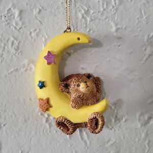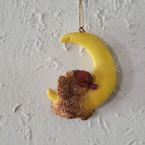 VINTAGE ✨️ Teddy Bear on Moon Ornament