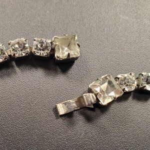 VINTAGE "Tennis Bracelet" Style Rhinestone 14" Necklace. All round stones approximately 3/16" except clasp square stones are 1/4". The look is so simple that it could be taken for real. Previously my grandmother so vintage from the 40-50s.