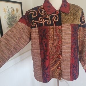 VINTAGE Textured Velvet Beaded Embroidered Lightweight Patchwork Jacket Large