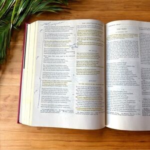 Condition: Vintage used condition with visible wear to cover and spine (frayed area shown). Multiple pages have handwritten notes and highlighted passages. Structurally intact and readable.