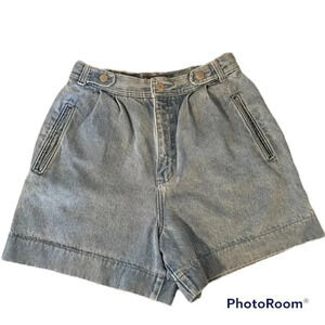 Vintage The Limited High Rise shorts with pleated detail in front. 2 front pockets and 1 back pocket. Light wash denim.