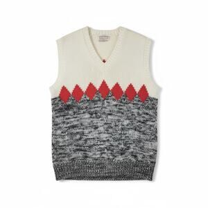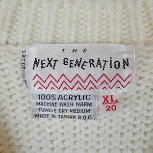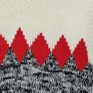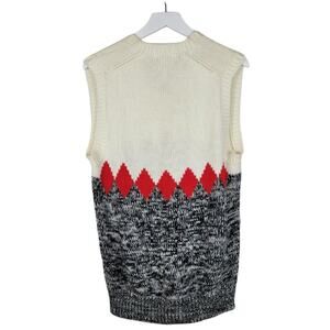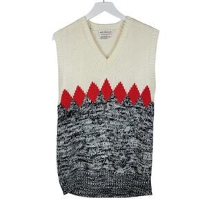 VINTAGE The Next Generation Ivory, Grey, and Red V-neck Sweater Vest. 100% Acrylic.
