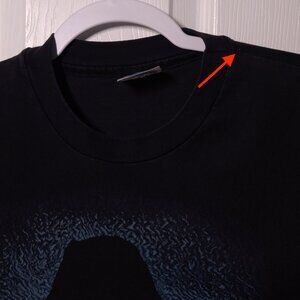 Overall, the shirt is in acceptable condition with normal wear and fading due to age (see pictures). The shirt has fading and a minor tag hole on the neck (see pictures).