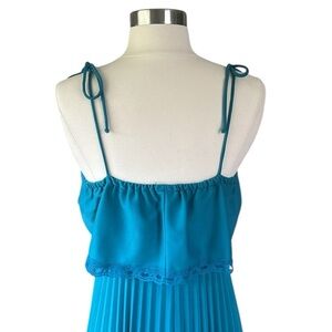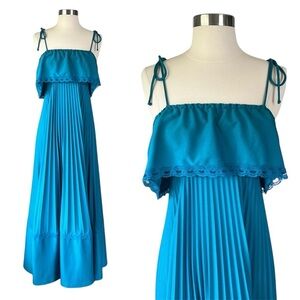 VINTAGE Tie Shoulder Pleated A-Line Maxi Dress Size Medium