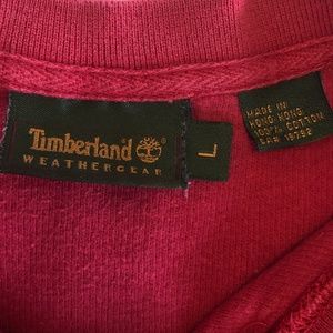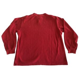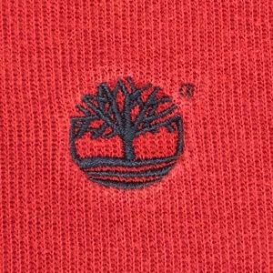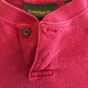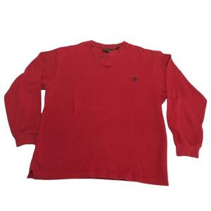 Vintage Timberland men’s 2 button red Henley long sleeve shirt. Navy blue embroidered Timberland tree logo.