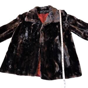 Beautiful vintage faux fur coat. Very thick and warm! Features three hook and eye front closure, two pockets, and In excellent preowned condition very well taken care of. Does not have a size listed - fits me as a women's medium a bit oversized , would likely also fit a large for best measurements please refer to photos. I provided approximate measurements with garment laying flat. From a smoke free home. Coat 1970's