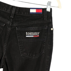 VINTAGE Tommy Hilfiger Black Jeans 28 x 31 Stretch Logo Spell Out Pocket Y2k