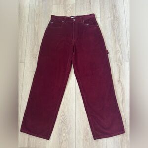 Classic corduroy trousers by Tommy Hilfiger. Features deep red color and multiple pockets.
