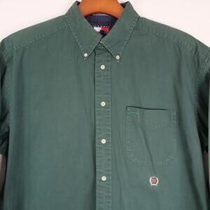 VINTAGE Tommy Hilfiger Shirt Mens Large Green Button Up Crest Logo 90s