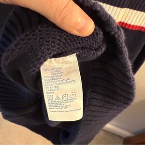 It’s the white and red stripes on the oversized collar for me! Great vintage condition. No rips or stains! 100% Cotton. Size XL but could fit L.