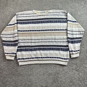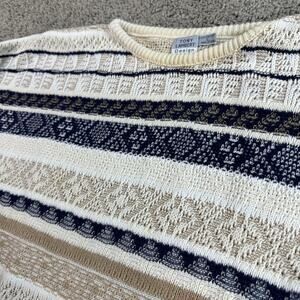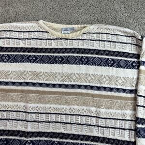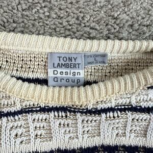 VINTAGE Tony Lambert Sweater Mens Large Beige Black Stripe Biggie Cosby 90s