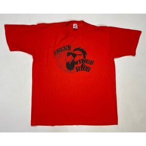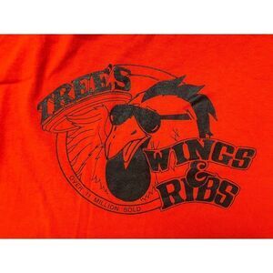 VINTAGE Tree's Wings & Ribs Graphic T-shirt Men XL Orange USA 90s Single Stitch