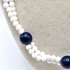VINTAGE Trifari White and Navy Blue Plastic Beaded Double-Strand Necklace