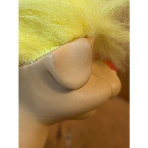 VINTAGE Troll Doll Dog 4 1/4" plus Yellow Hair Unmarked. Has normal wear/ marks on body. See pictures. Measurements: 4.25"x 5.25" (8999)