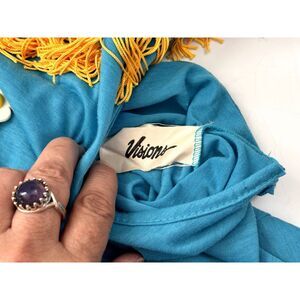 VINTAGE Turquoise Mod Mini Dress GoGo Fringe Daisy Cute Size S 1960's 70's