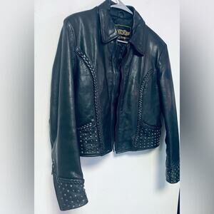VINTAGE UNIK 100% Genuine Leather Motorcycle Heavy Jacket with Studded Detail