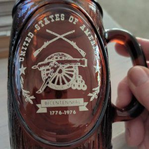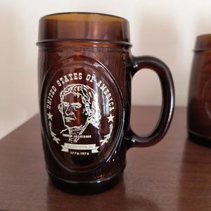 Add a special patriotic touch to your drinkware collection with this vintage set of four 1976 USA Bicentennial barrel-style brown glass mugs.