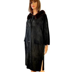 VINTAGE Unbranded Women's Size M Hunter Green Lambskin Suede Coat w/ Mink Collar