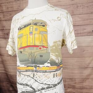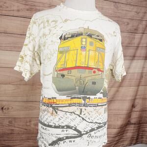 VINTAGE Union Pacific Shirt XL White Train Map AOP Made USA 90s Single stitch