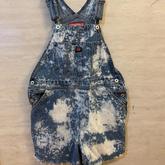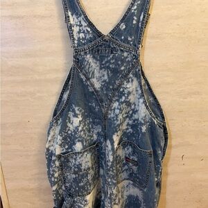 A pair of shortalls known for their 90s style and quality denim fabric.